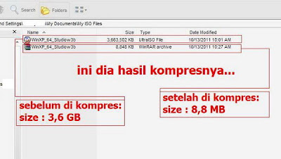 - Siapin file yang mau dikompres. Disini ane pilih file iso dari opearting system winxp_64bit yang ukurannya sekitar 3.6gb.